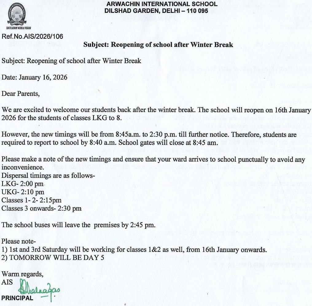 This is to inform you that the Parent-Teacher Meeting scheduled on 5 August 2023 has been rescheduled on 19 August, 2023 for classes Pre-Primary to XII. You are requested to attend the PTM to discuss the learning progress of your ward with the respective teachers.