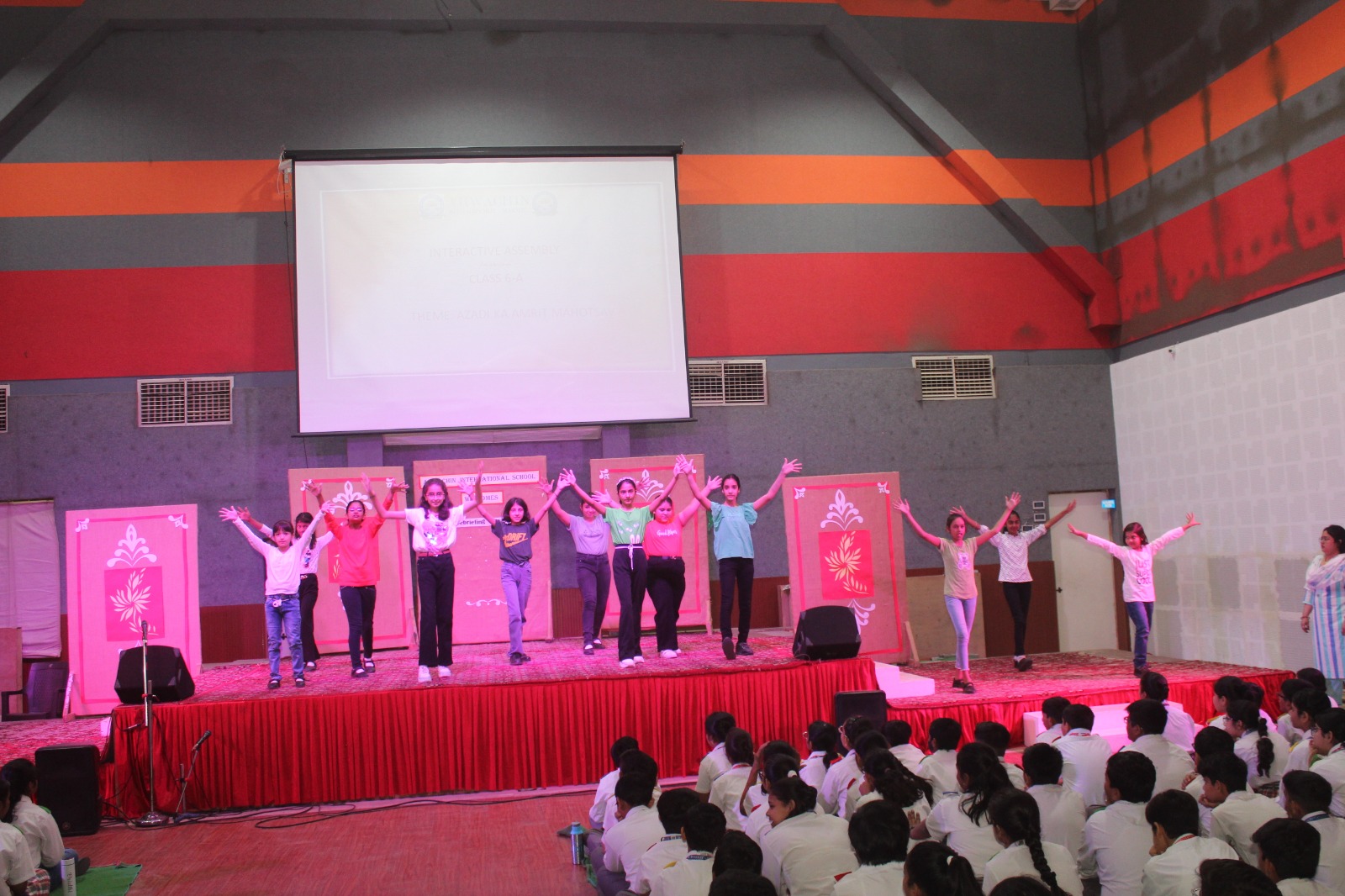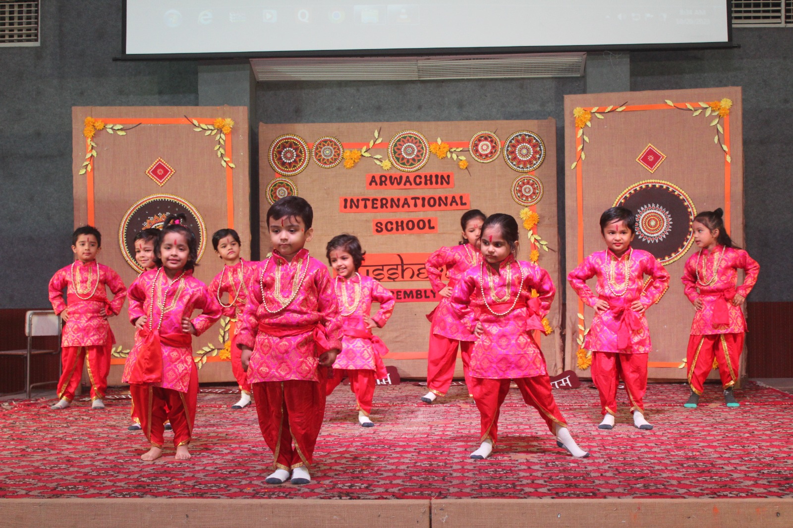 The highlight of the event was undoubtedly the vibrant dance performance set to the tunes of “Ram Siya Ram” and “Mere Ghar Ram Aaye Hain,” where students from classes 3 to 5 danced with synchronized grace.