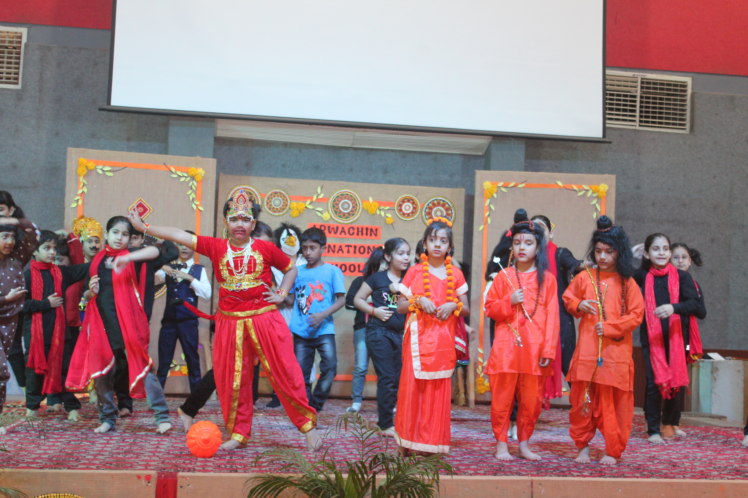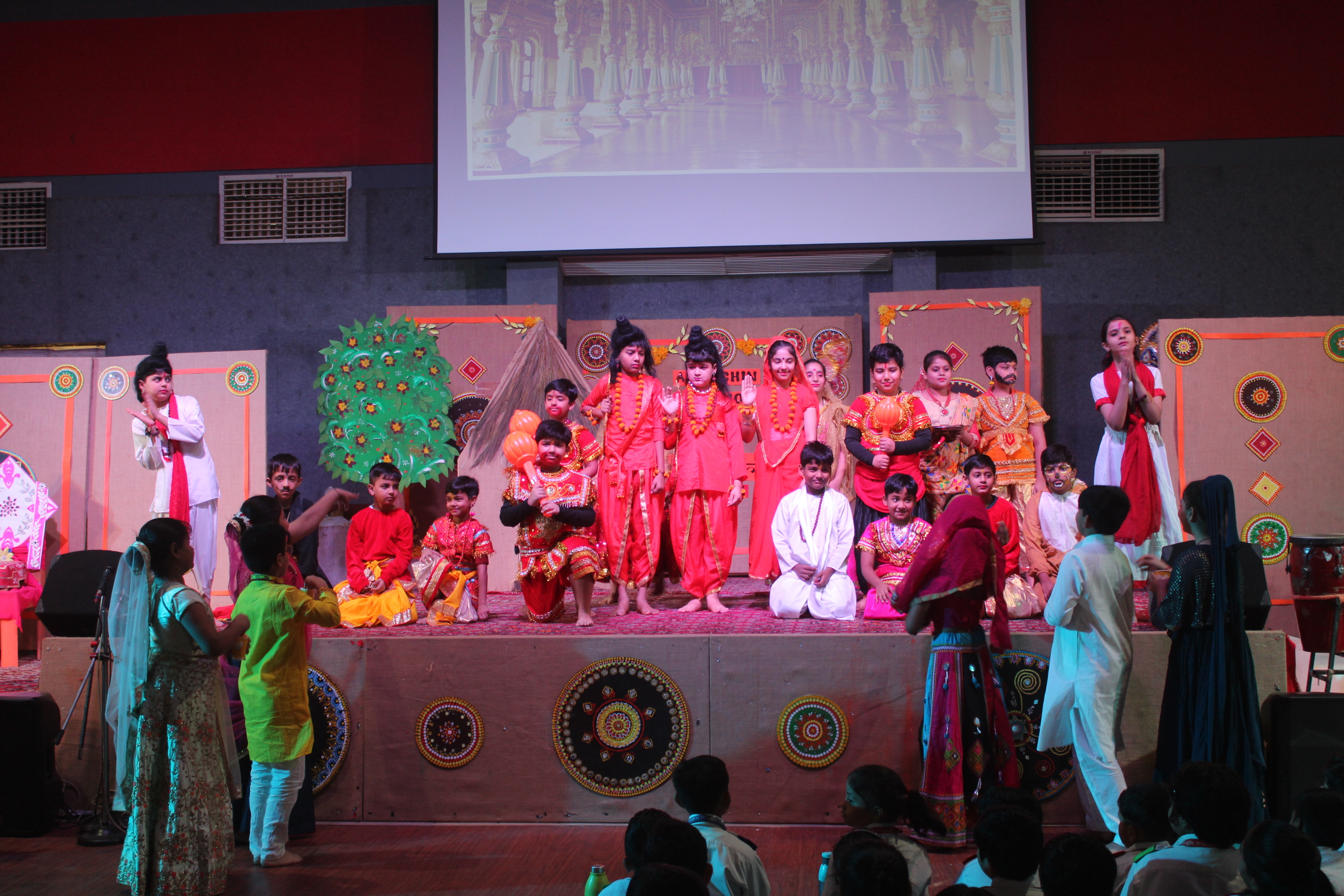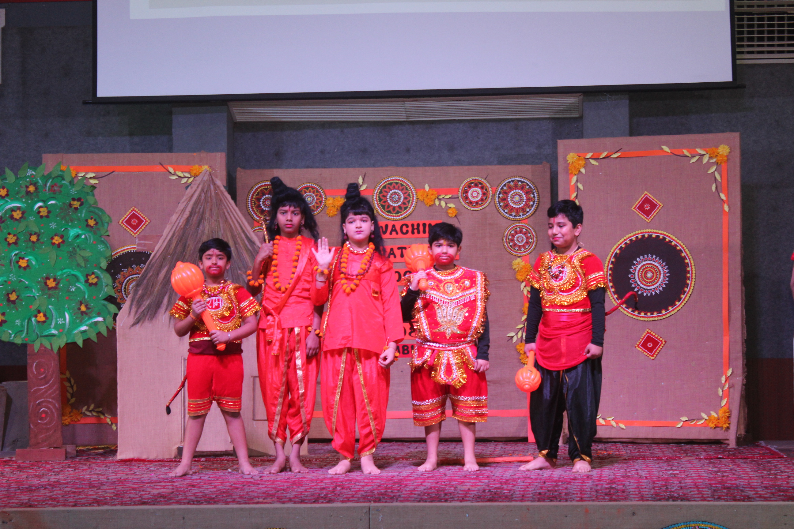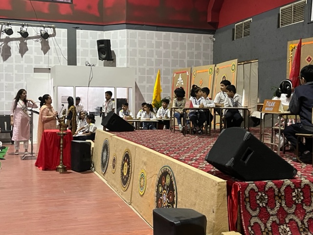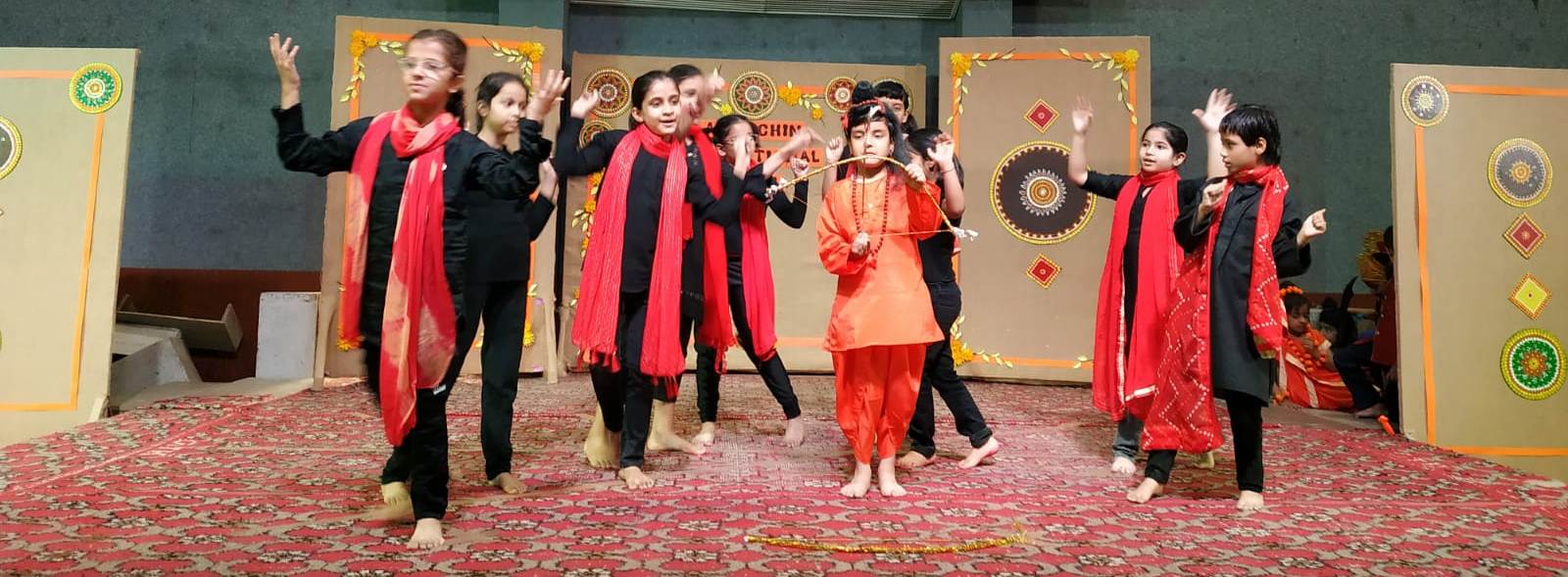 The ceremony commenced with a traditional lamp lighting. Following this, a beautiful skit by students of classes 4 and 5 brought to life the journey of Lord Shri Rama. Adding to the cultural enrichment, classes 3 and 4 eloquently recited the Ek Sloki Ramayana in Sanskrit, which beautifully summarizes the entire Ramayana in a single stanza.