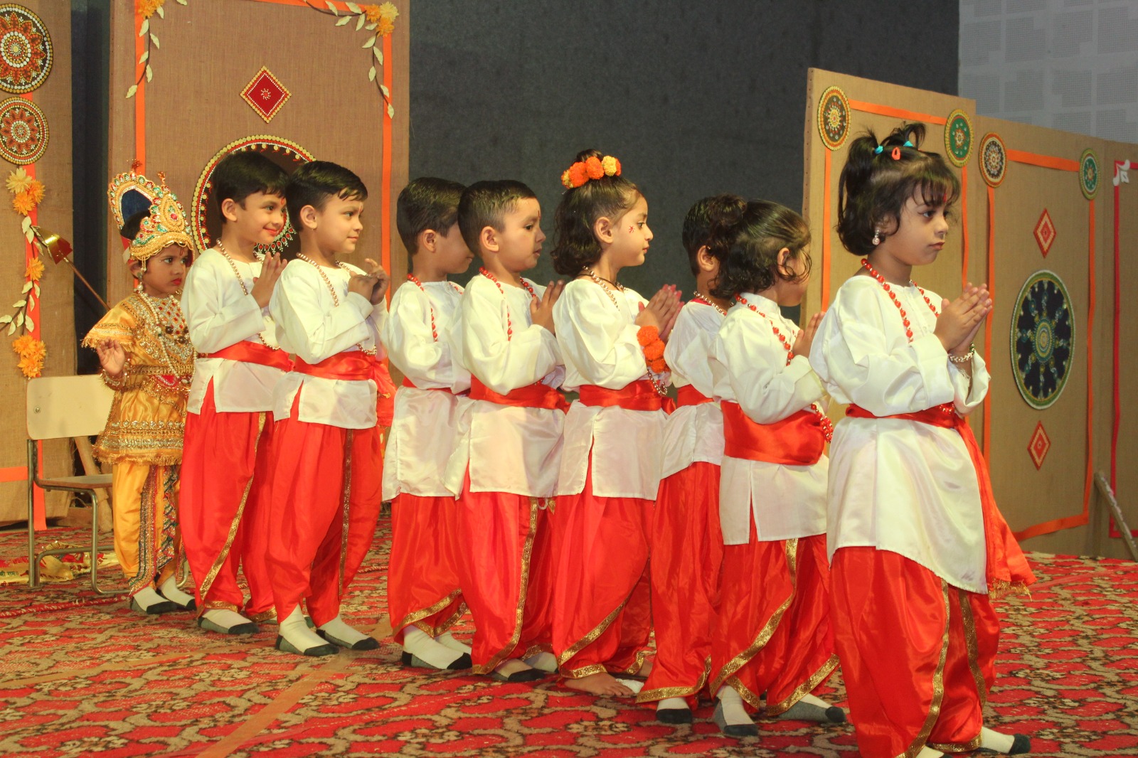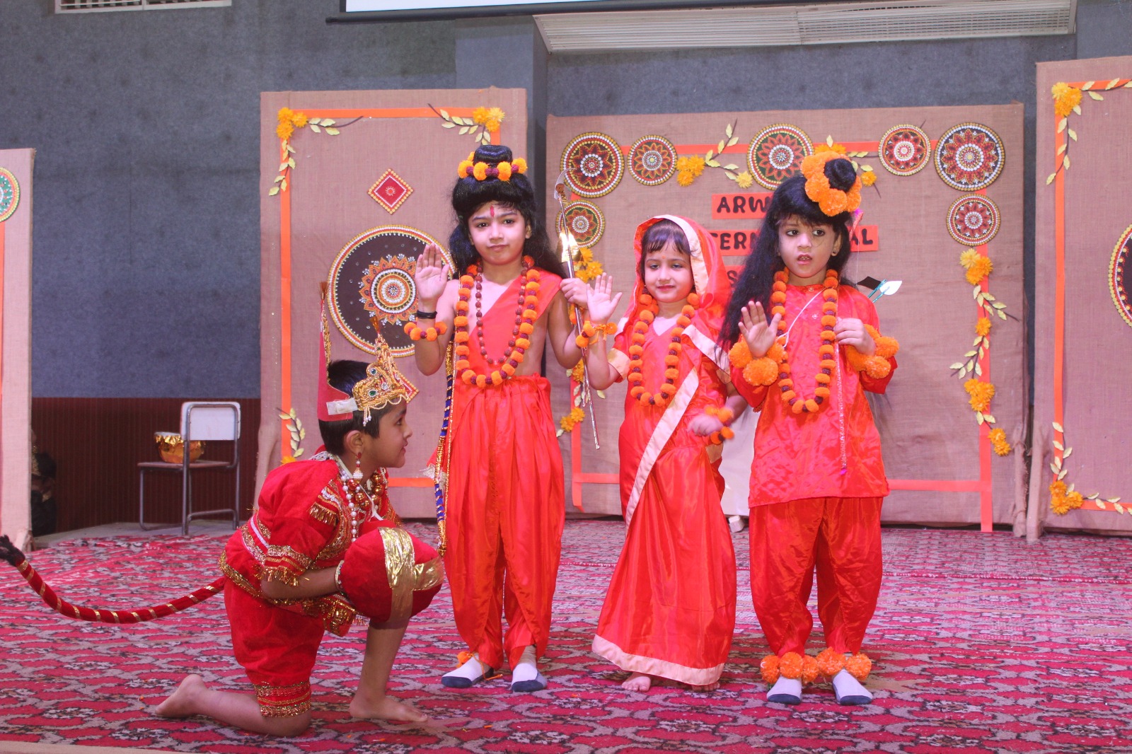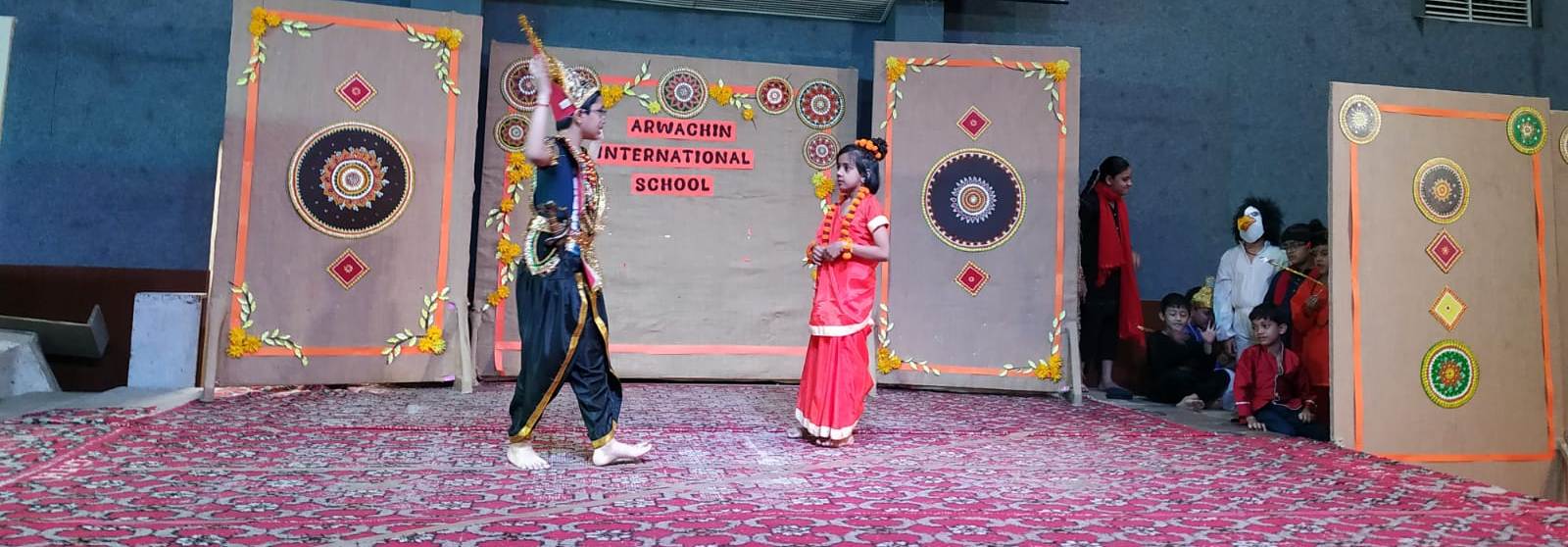 The ceremony commenced with a traditional lamp lighting. Following this, a beautiful skit by students of classes 4 and 5 brought to life the journey of Lord Shri Rama. Adding to the cultural enrichment, classes 3 and 4 eloquently recited the Ek Sloki Ramayana in Sanskrit, which beautifully summarizes the entire Ramayana in a single stanza.