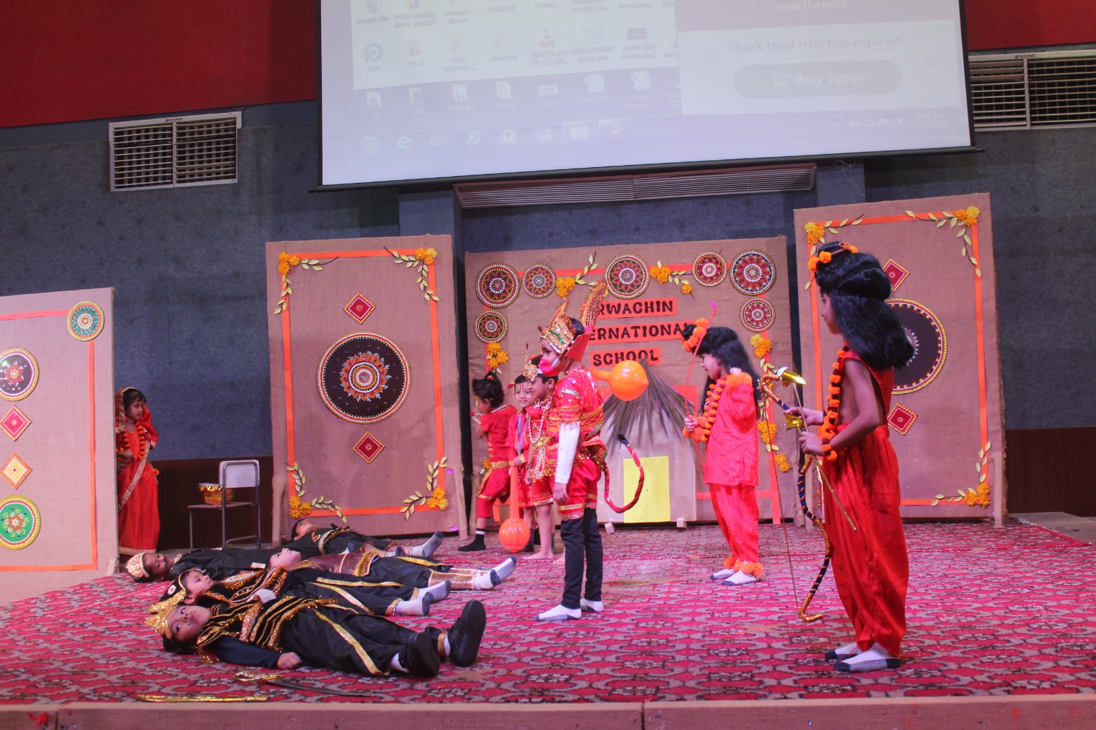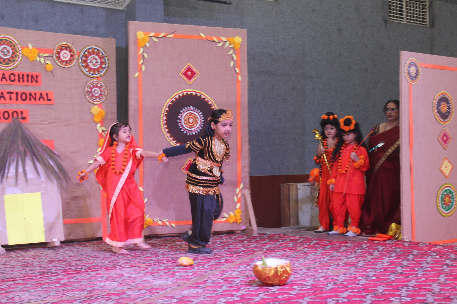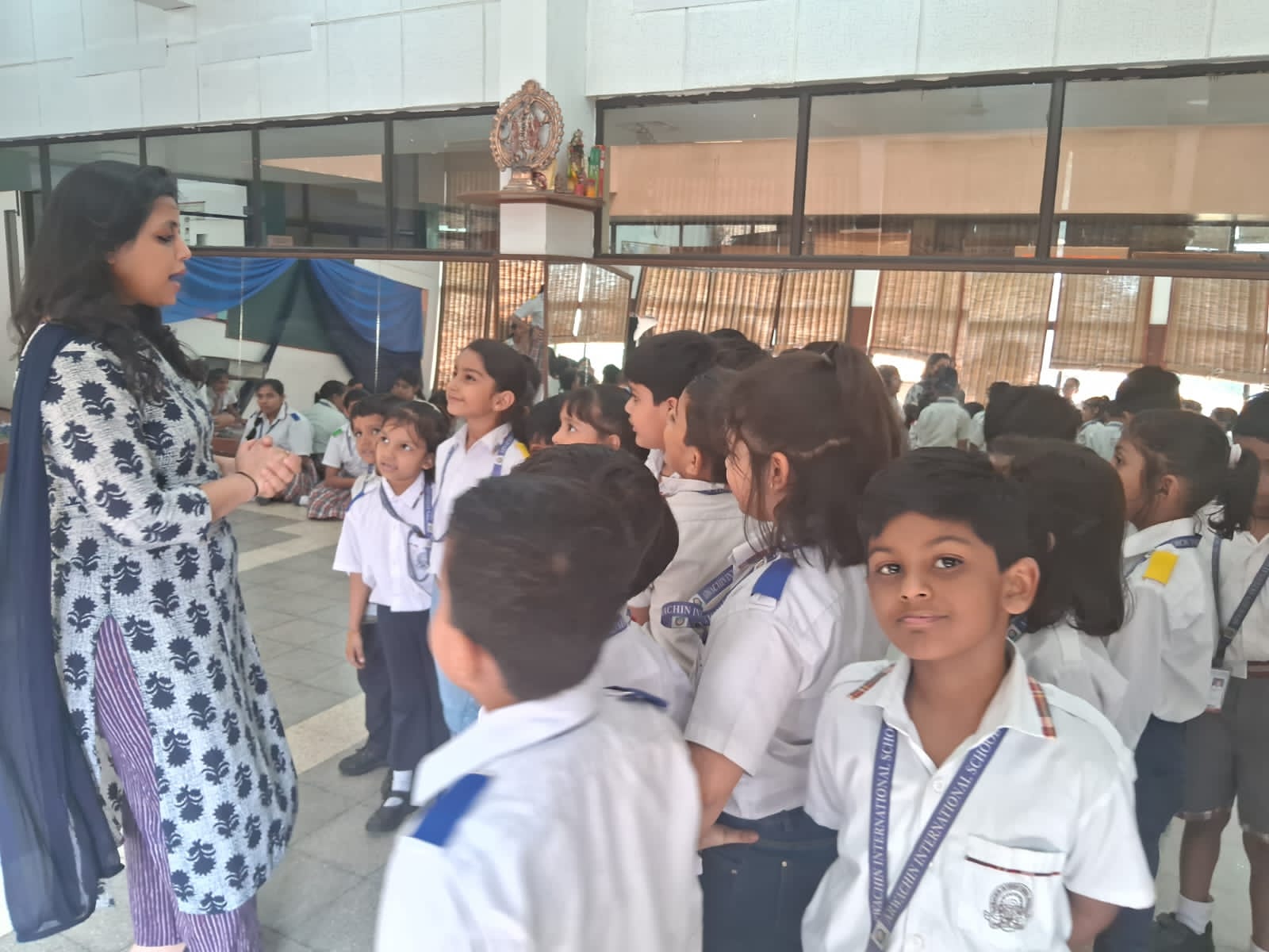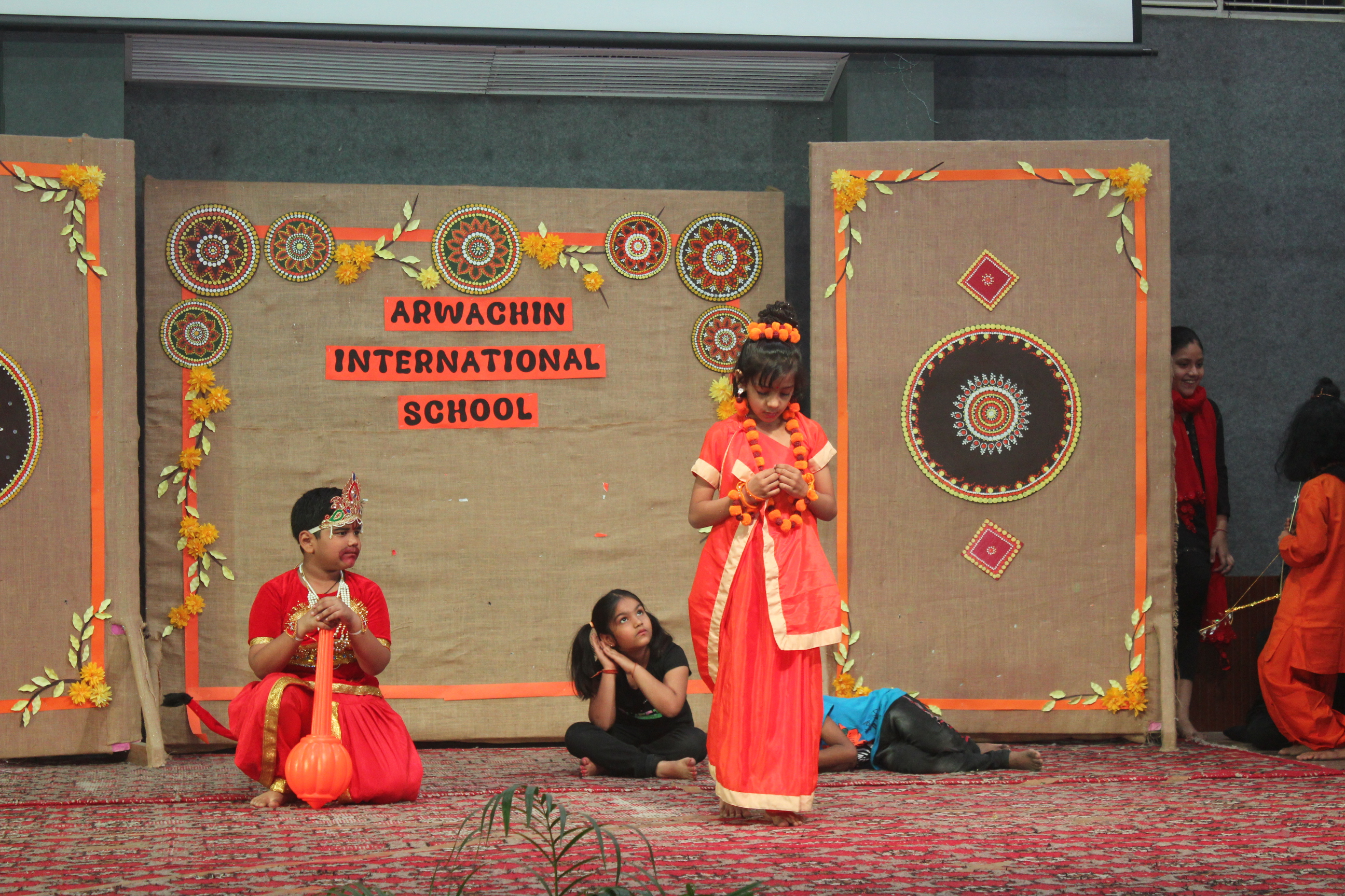 The ceremony commenced with a traditional lamp lighting. Following this, a beautiful skit by students of classes 4 and 5 brought to life the journey of Lord Shri Rama. Adding to the cultural enrichment, classes 3 and 4 eloquently recited the Ek Sloki Ramayana in Sanskrit, which beautifully summarizes the entire Ramayana in a single stanza.