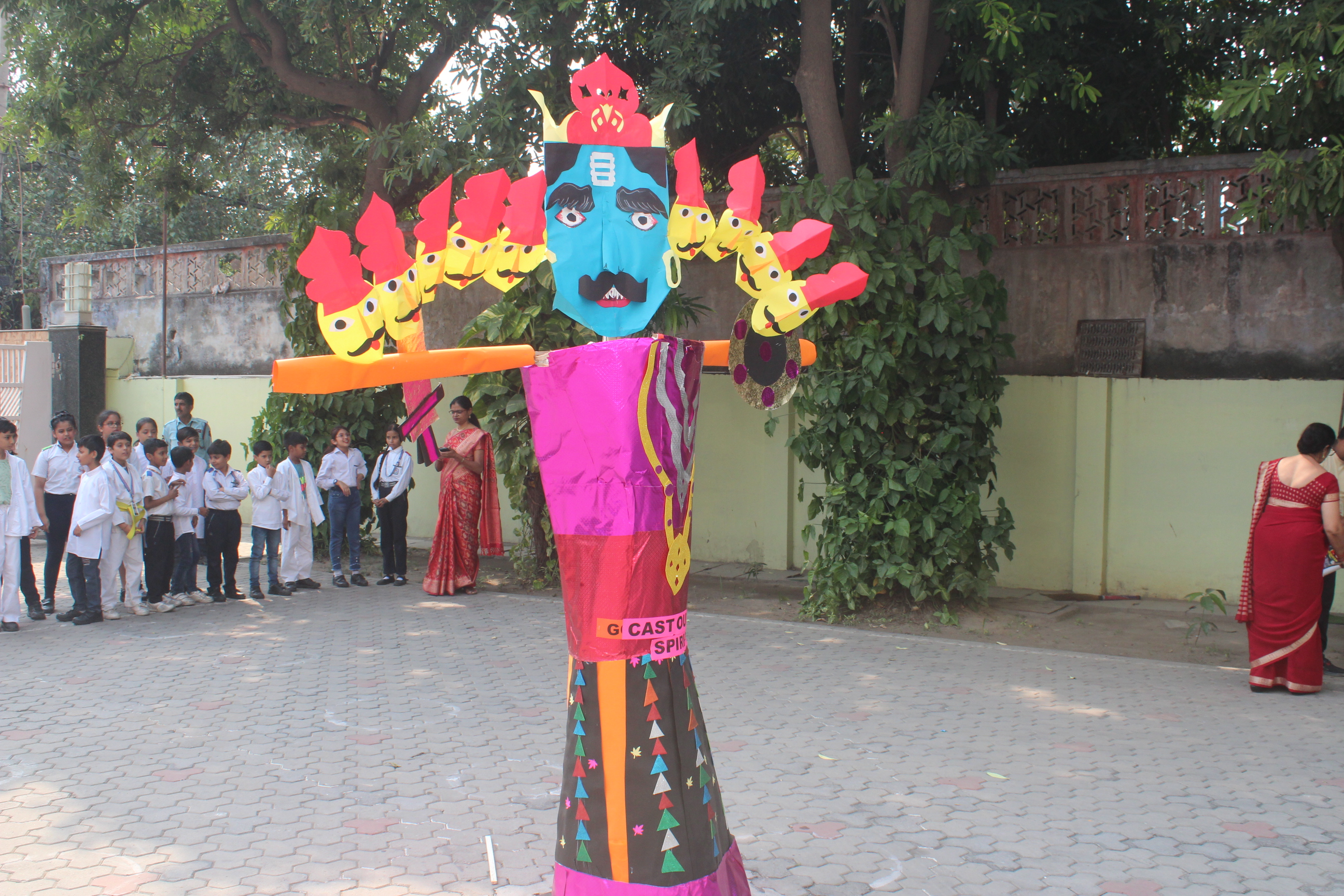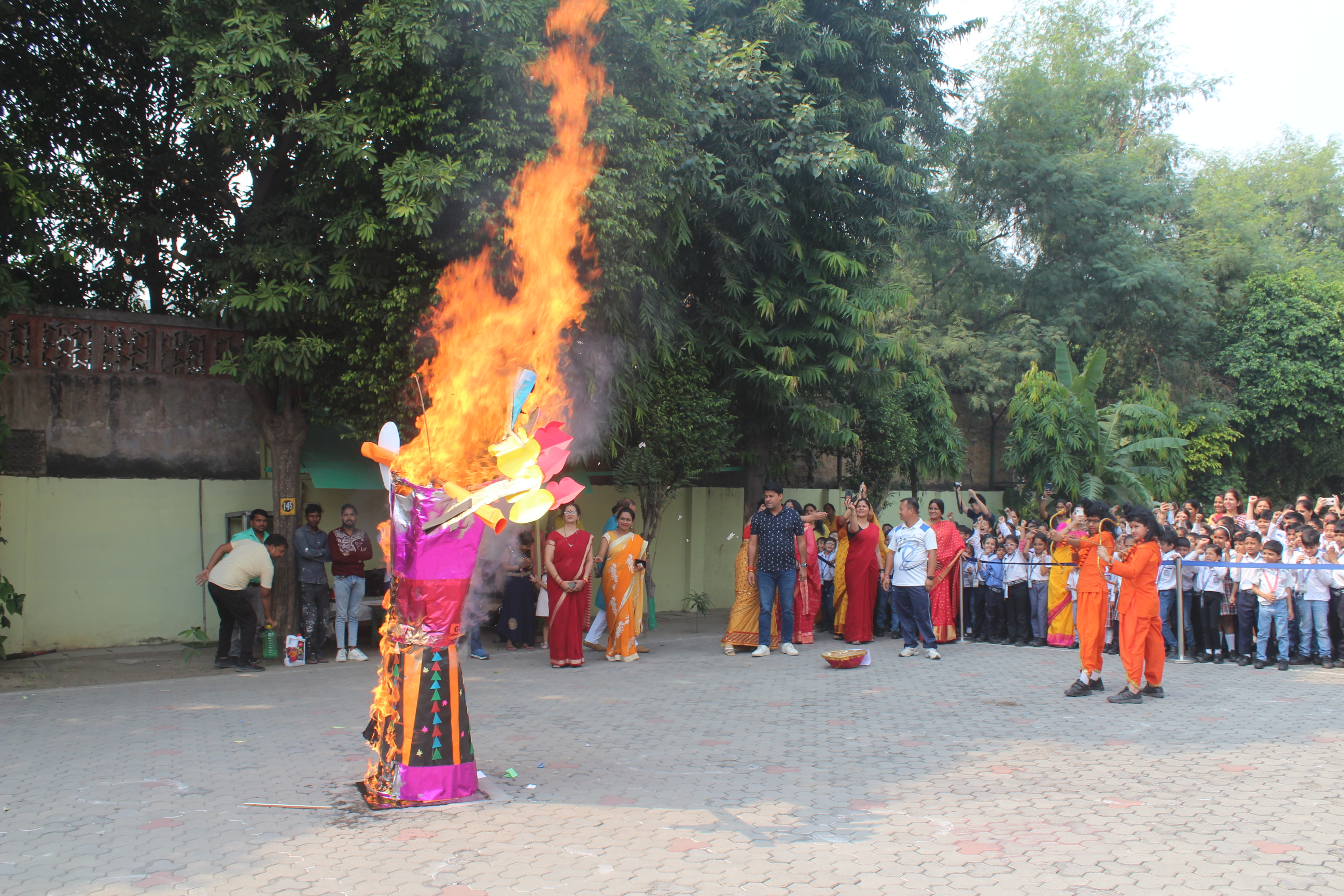 Ravan Dahan was also done in school premises, where students burned away their three bad habits.